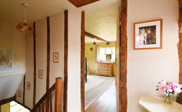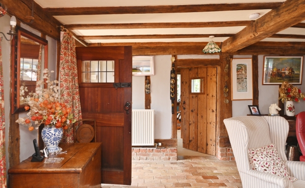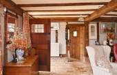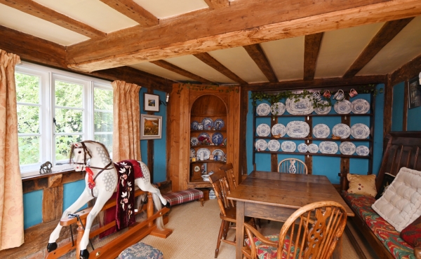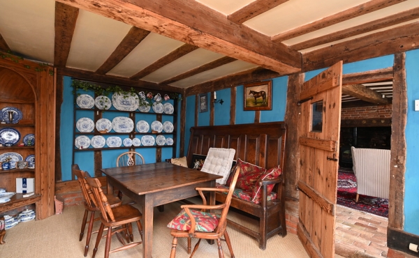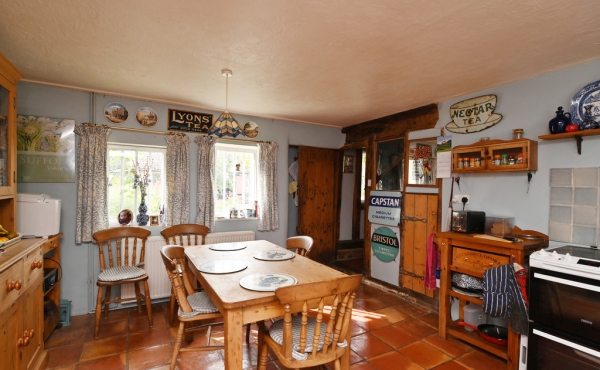 ACCOMMODATION From the outside porch the external door leads to the sitting room. This fabulous room has brick floor, superb inglenook fireplace with log burning stove and exposed timbers. Internal doors lead to an inner hallway and dining/music room. There is a door leading to the kitchen and the stairs to the first floor, leading to the first floor landing office, family bathroom, and further stairs to the attic bedroom. The country-style kitchen has floor units with work top over, inset stainless steel sink/drainer and space for a free standing cooker, washing machine and fridge. There is a boot room off the kitchen with a door to the garden.
