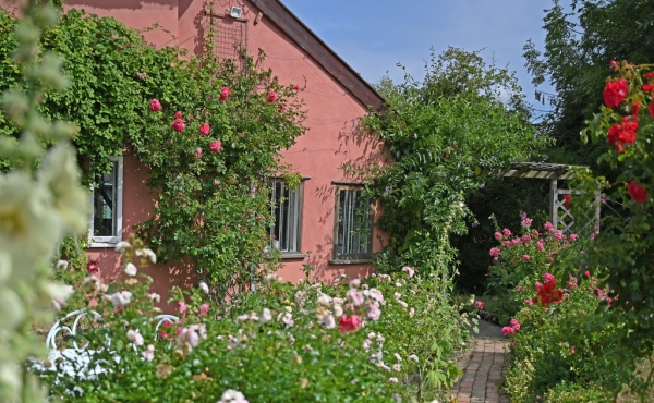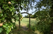 The cottage style garden wraps around the house with many shrubs and plants to the front of the house such as hollyhocks, akebia, lilacs, variety of roses and lavender. There is a summer house in the rear garden with some fruit trees. There is also a separate orchard with a variety of fruit trees, such as plums, apples, pear and damson. The paddocks lie beyond.